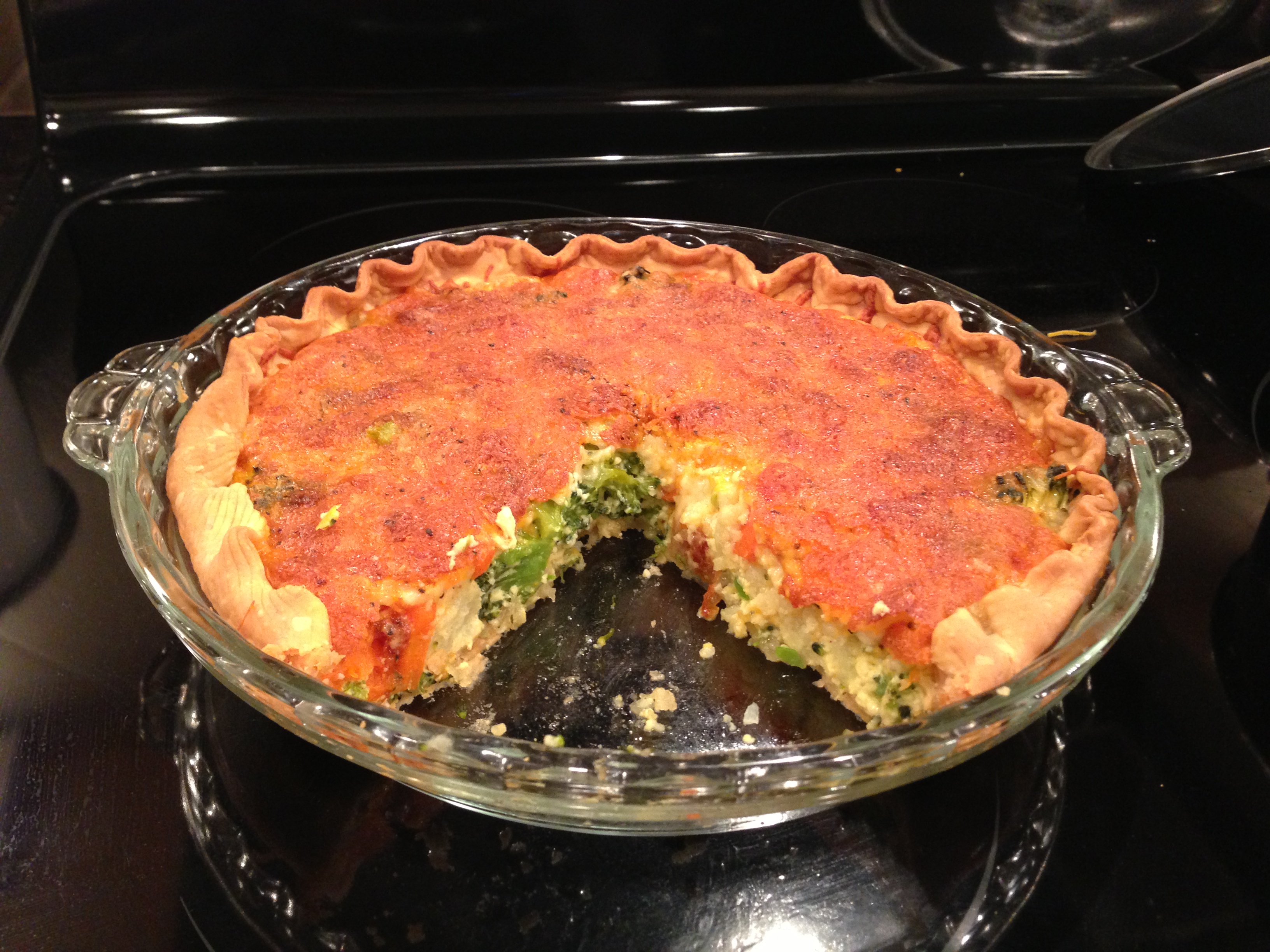 Preheat oven to 375 degrees. Fit piecrust into a 9-inch pie-plate. Cook fresh vegetables in microwave on high for 5-6 minutes or until crisp-tender. Spoon into prepared crust, and top with cheeses. Combine egg yolks and remaining 4 ingredients, stirring well. Pour over cheese. Bake for 40-45 minutes or until set. Let stand 10 minutes before serving. Serves 6.