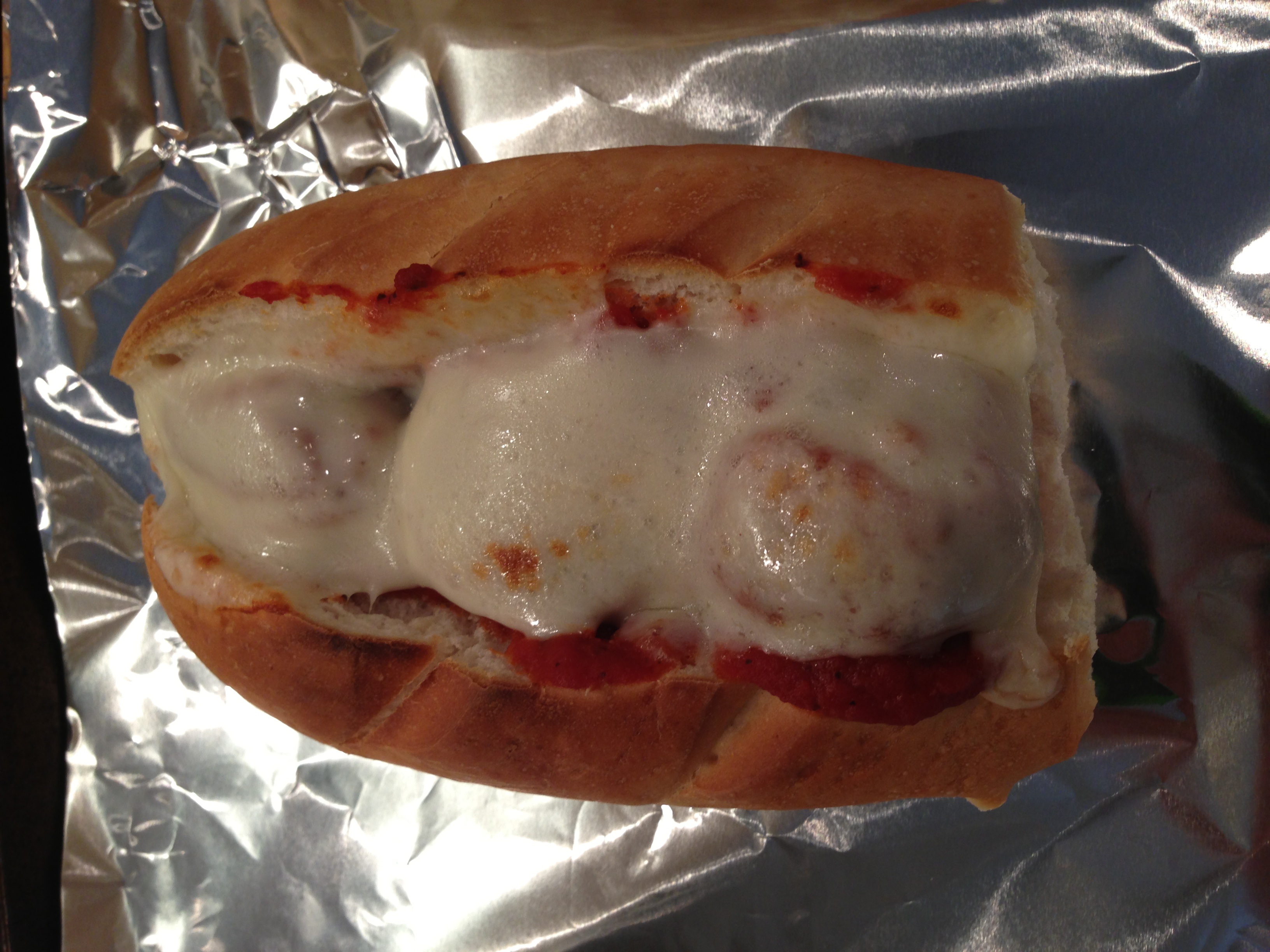 Warm meatballs and sauce in a pan or the microwave. Place meatballs with some sauce inside a good sub roll. Cover with a slice of mozzarella cheese. Broil until cheese is melted.