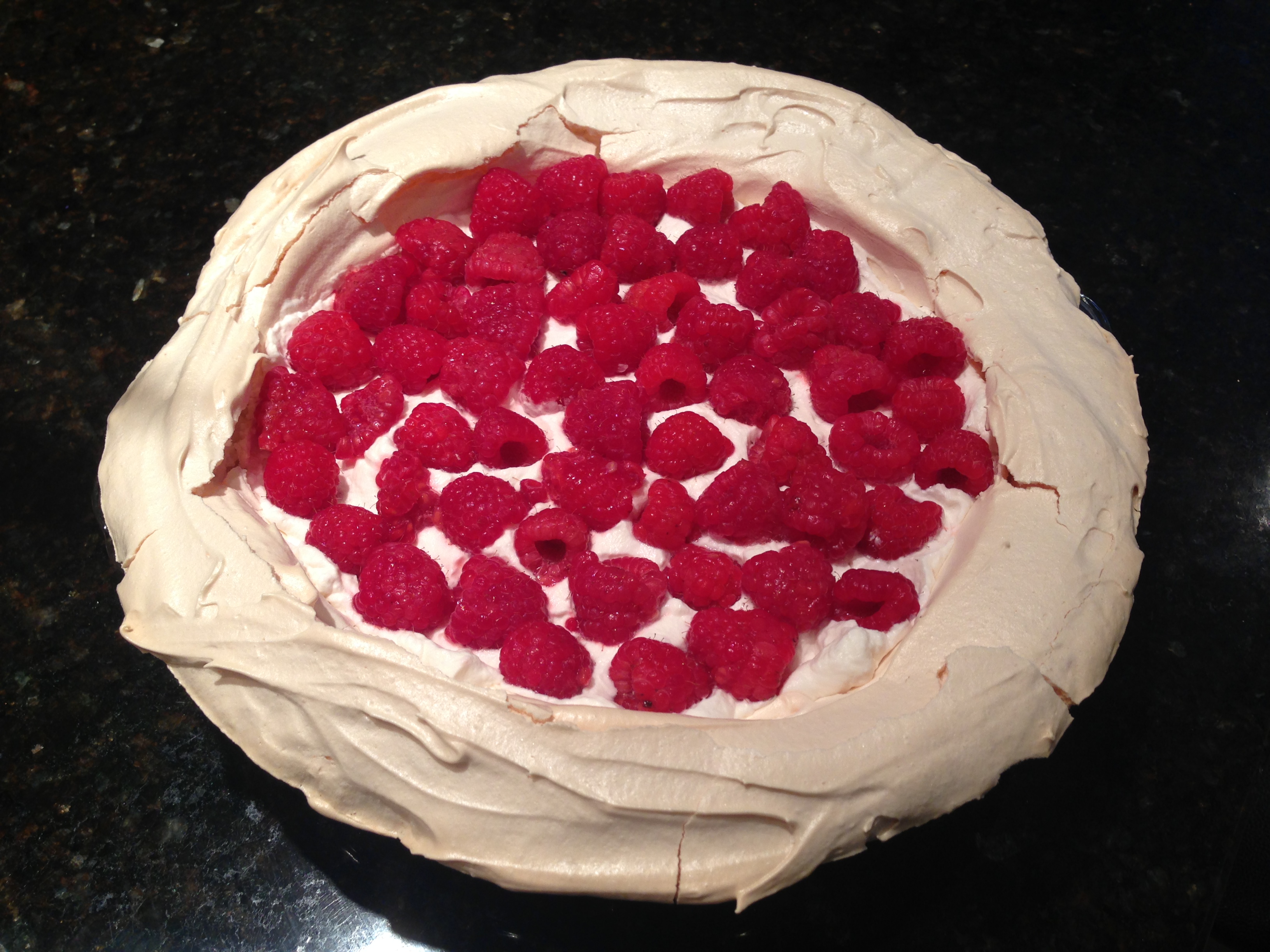 This is one of my husband’s favorite summer desserts. What could be better than meringue, raspberries, and fresh whipped cream? It’s a great way to use up your leftover egg whites from the Vegetable-Cheese Quiche. It helps to use a serrated knife and a pie server to remove the slices. Enjoy the compliments! (This one’s for you Linda!)