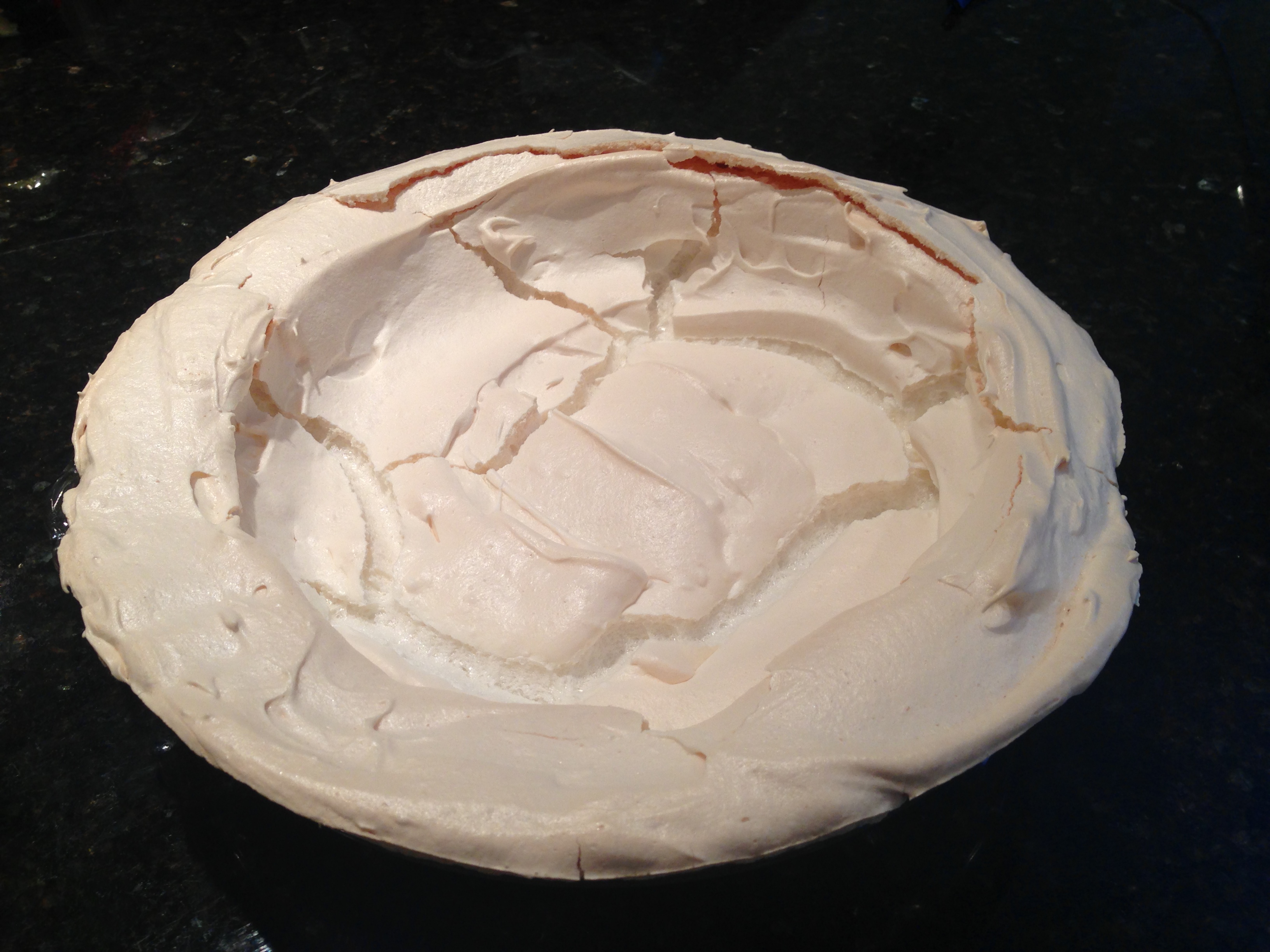 Beat on high speed the egg whites, salt, and cream of tartar until stiff. Beat in the sugar a little at a time, and then vanilla until stiff peaks form. Spread in the pie plate making the edges higher to resemble a very thick pie crust. Bake until the edges are dry and firm to the touch, 1 hour. Cool pie completely.